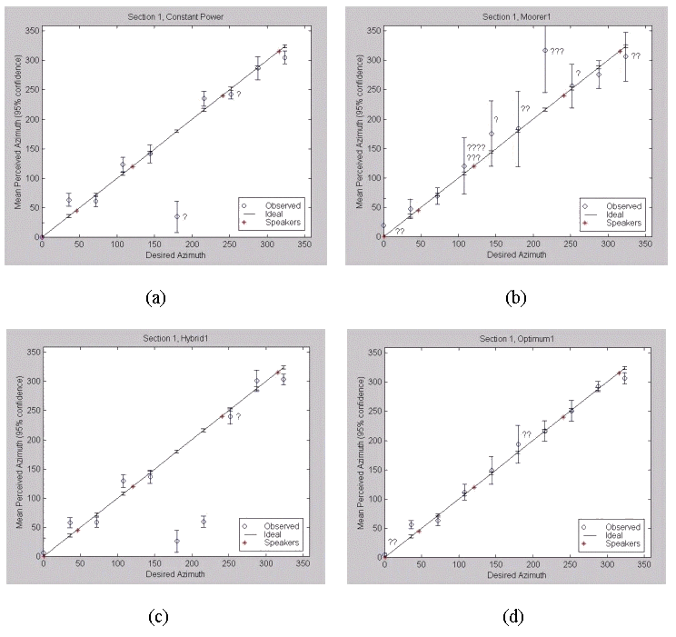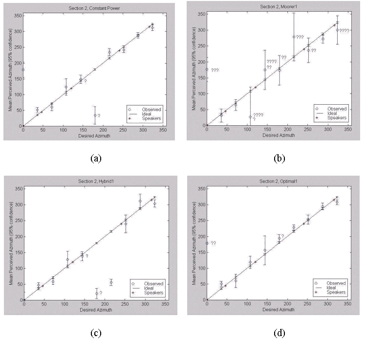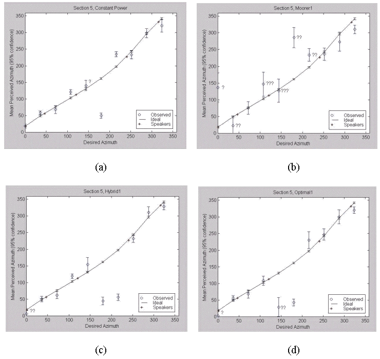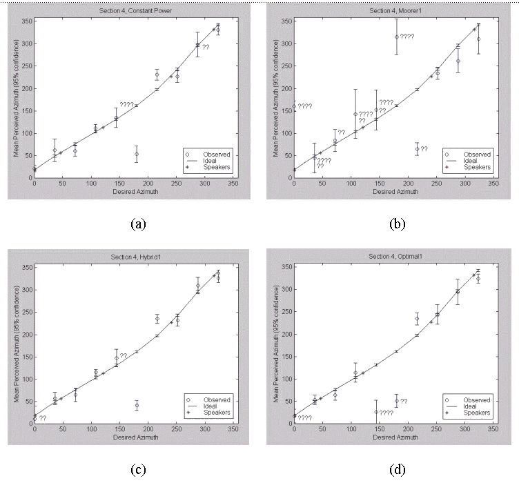 Fig. 4.14. Section 5 Results: (a) Constant Power, (b) Moorer, (c) Hybrid, (d) Gerzon Optimal.