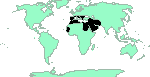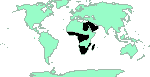 S.Spain, Morocco, Mauritania, Arabia, Egypt, Eritrea, Somalia, Kenya, Burundi, Zaire, Equatorial Guinea, Zambia, S.Africa, Ghana, Cape Verde, Comoros, Madagascar, India, Burma, Borneo, Sarawak. See [maps]