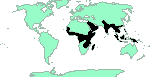Tropical Asia, New Guinea, Yemen, Mauritania, Gambia, Ivory Coast, Burkina Faso, Ghana, Nigeria, Eritrea, Zaire, Tanzania, Comoros, Madagascar, Mauritius, Seychelles, Reunion. See [maps]