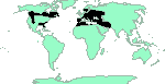 SEU, CEU, W.Asia, N.Africa, Newfoundland - Rocky Mountains, Massachusetts, NA.Georgia, Mississippi. See [maps]