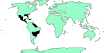 Puerto Rico, Jamaica, Cuba, Hispaniola, Martinique, Antiqua, Mexico, Guatemala, Nicaragua, Panama, Honduras, Trinidad, Venezuela, Guianas, Brazil, Argentina, Paraguay, Peru. See [maps]