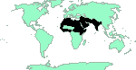 Sahara (desert and subdesert zones around), Hoggar, Tadmei, Red Sea Hills - Sudan - N.Somalia, W.Arabia, Syria, W.Iraq, E.Iran - Baluchistan - Pakistan, C.India. See [maps]