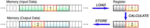 Performance of the SPE program can perfectly be maintained when load and store interactions with the memory are unnecessary to be performed. Calculation of the counter variable in the for statement, for example, will cause no problem as it is performed within the register.