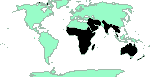 Guinea, Ghana, Ivory Coast, Nigeria, Niger, Cameroon, Gambia, Congo, Zaire, Angola, Malawi, Tanzania, Mozambique, Zambia, Zimbabwe, Madagascar, Mauritius, ..., India, Java, New Guinea, Queensland. See [maps]