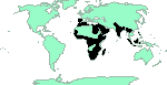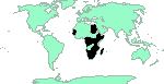 S.Spain, Morocco, Mauritania, Arabia, Egypt, Eritrea, Somalia, Kenya, Burundi, Zaire, Equatorial Guinea, Zambia, S.Africa, Ghana, Cape Verde, Comoros, Madagascar, India, Burma, Borneo, Sarawak. See [maps]