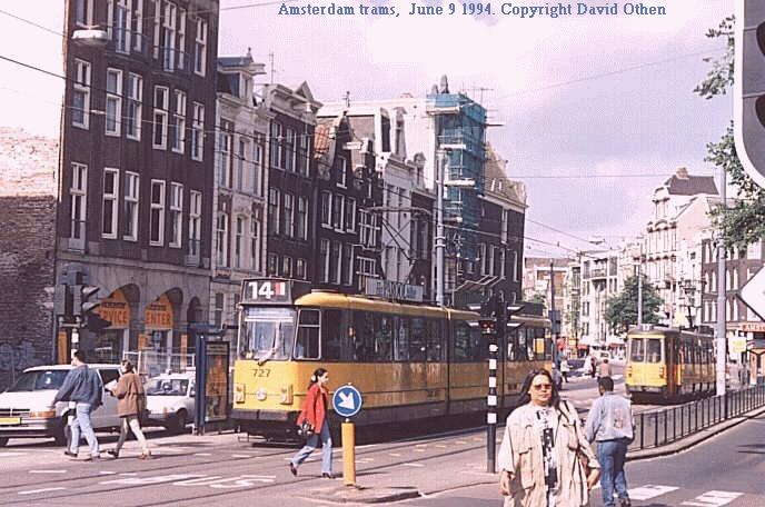 Amsterdam trams used to be yellow in the old days. This picture was taken by David Othen 9th June 1994.