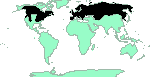 Europe, Urals, Kazakhstan, Siberia, Far East, Sakhalin, from (Yukon - British Columbia) - Newfoundland, Montana, New Jersey. See [maps]