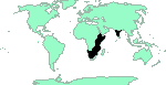 S.India, Ceylon, ..., Eritrea, Uganda, Tanzania, Mozambique, Botswana, Zimbabwe, S.AfricaMadagascar, . See [maps]