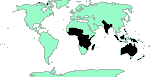 Guinea, Ghana, Ivory Coast, Nigeria, Niger, Cameroon, Gambia, Congo, Zaire, Angola, Malawi, Tanzania, Mozambique, Zambia, Zimbabwe, Madagascar, Mauritius, ..., India, Java, New Guinea, Queensland. See [maps]