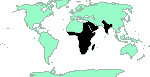 Senegal, Ivory Coast, Nigeria, Congo, Zaire, Angola, Sudan, Arabia, Ethiopia, Somalia, Kenya, Uganda, Rwanda, Malawi, Tanzania, Botswana, Zambia, Zimbabwe, Mozambique, Namibia, S.Africa, Madagascar, ..., N.India. See [maps]