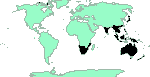 Angola, Zaire, Benin, Cameroon, Gambia, Ghana, Nigeria, Cape Verde, Eritrea, Uganda, Malawi, Kenya, Tanzania, Zambia, Zimbabwe, S.Africa, Mauritius, Comoros, Madagascar.Reunion. See [maps]