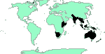 Sri Lanka, India, Thailand, Borneo, Java, Philippines, Sulawesi, New Guinea, Queensland, Solomons, ..., Botswana, Kenya. See [maps]