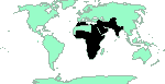 Arabia - India, Ceylon, Kashmir, S.Africa - E.Africa - Senegal, Somalia, Tunisia. See [maps]