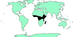 Senegal - W.Kenya, Tanzania, W.Uganda - Congo, Cameroun, Nigeria, Liberia, Sierra Leone. See [maps]