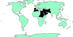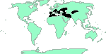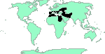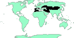 Mediterranean, Spain, Yugoslavia, Hungary, Rumania, Bulgaria, S.Russia, Ukraine, Georgia, Tadzhikistan, Iraq, Iran, Syria, Jordan, Lebaon, Israel, Morocco. See [maps]